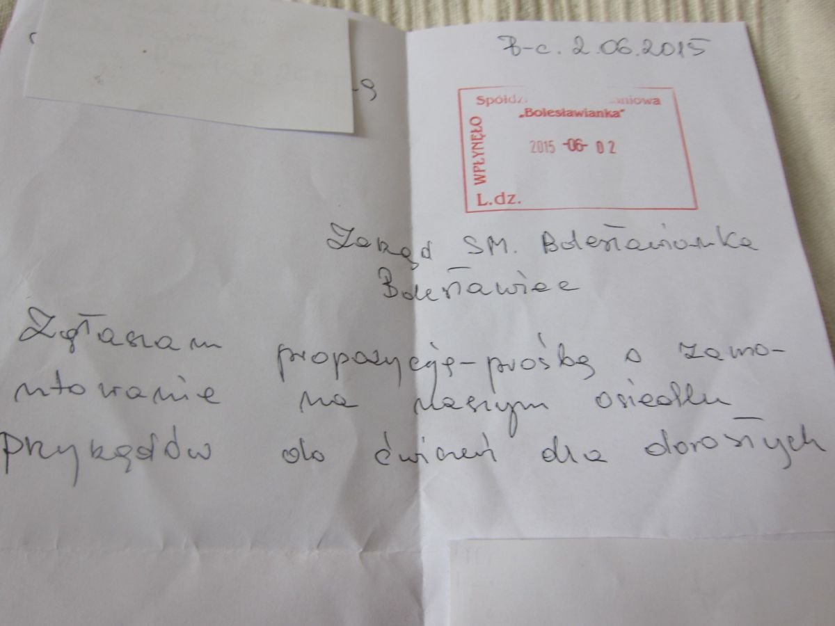 Panie Prezesie,wniosek jest w Spoldzielni,niestety do dziś bez odpowiedzi,SH