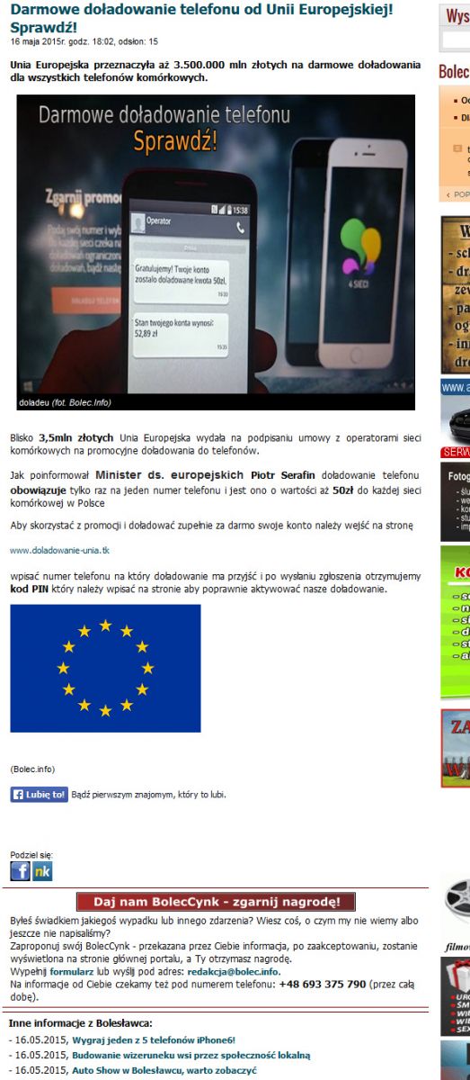 Darmowe doładowania telefonu - ostrzeżenie!