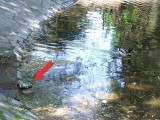 Jeden z nich pływał nawet w towarzystwie kaczki, lecz trochę się zmęczył i postanowił chwilę odsapnąć na brzegu.