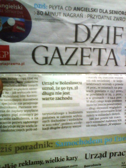 Gazeta Prawna opublikowała wyniki kontroli NIK w urzędach w zakresie egzekwowania przez nie należności od dłużników. Wymieniono w raporcie z kontroli Starostwo Powiatowe w Bolesławcu, które nie podjęło ż a d n y c h kroków w celu wyegzekwowania ok. 50 tys, zł.
