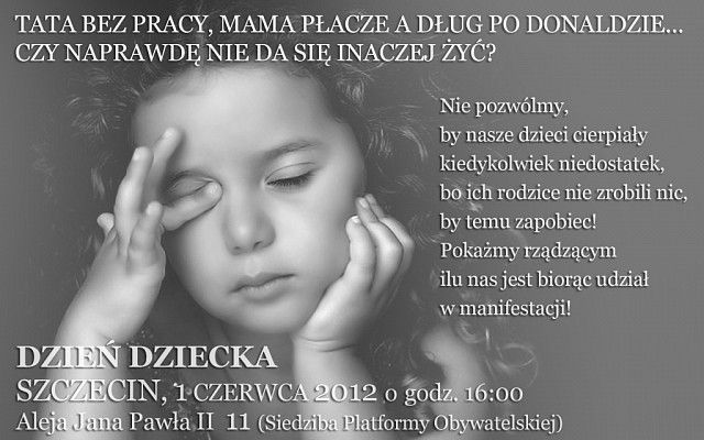Przemysław napisał(a): Polskie Dziecko nie potrzebuje poniżającej go akcji w stylu: Podziel się kromką chleba ". Polskie dziecko potrzebuje aby państwo Polskie mniej zabierało rodzicom. http://www.facebook.com/events/402469386442216/417026128319875/?notif t=plan*mall_activity.