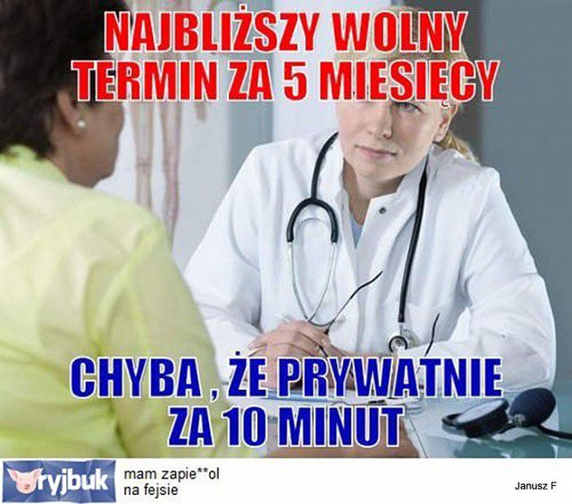 Tym razem Pan ROKO28 założył temat bardzo ważny niemal dla całego społeczeństwa. Wszystkie dotychczasowe reformy służby zdrowia unowocześniły szpitale, podniosły znacznie pensje lekarzy odremontowały budynki -- Nie zadbały jednak o najważniejszy element tej składanki. Nie zadbały o pacjenta. Okazało się że zwykli ludzie płacą ogromny haracz na funkcjonowanie służby zdrowia a w chwili gdy jej potrzebują ona jest niedostępna. W praktyce lekarze specjaliści są dla CHORYCH CAŁKOWICIE NIEDOSTĘPNI. Choroba nie chce czekać i nie interesuje jej że pan doktor chce zarobić.
