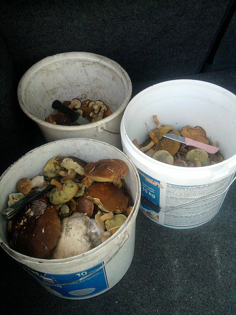 3 godziny zbierania i może 1/5 wiaderka. Nie ma grzyba w lesie, albo inaczej. Jest grzyb w lesie, ale trzeba się nachodzić.