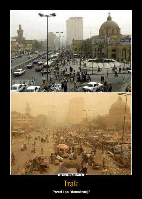 Nie broniłem. Bo nie musiałem "bronić" kraju przed jego własnymi obywatelami! Kilka lat wcześniej 1990, 1991, 1995 po tej samej Fallujah - tym samym mieście, który stał się pieklem dla amerykanów - chodziłem bez rynsztunku. A np. w Ramadi jeszcze w 1993 mieszkali polscy robotnicy w liczbie kilkuset. Bo wcześniej myśmy tam budowali i pomagali ludziom przetrwać, a nie niszczyli w imię jakiejś gó*j polityki. Po pierwszej wojnie w zatoce, Polacy w Iraku wciąż czuli sympatię tubylców. Dopiero "impreza" w której ty uczestniczyłeś spowodowała, że teraz tam na nas plują, szanowny "obrońco" Karbali. I nikt tu nie drwi z tych co zginęli. Polegli jako żołnierze i należy im się hołd. Tyle że, pytanie - co nam przyszło z ich poświęcenia i śmierci? Czy oni polegli broniąc Polski? Czy ich śmierć przyniosła Ojczyźnie jakąś korzyść? Jaką? Zgineli za kontrakty dla Bumaru których nie było? Zginęli za bezpieczeństwo Polski? Tak wzrosła sprawność armii, że jestesmy teraz zdolni samodzielnie bronić kraju? Co? Mozemy przełozyć doświadczenia ze zwalczania partyzantki, z ochrony campów, checkpointów i konwojów do normalnej wojny na terenie Europy? Groziła nam arabska inwazja nad Wisłą? Nie. Polacy bronili interesów amerykańskich i żydowskich, nie swoich (no chyba, że ich interesy są tożsame z naszymi, ale chyba nikt o zdrowych zmysłach w to nie wierzy patrząc na ich ekonomiczne roszczenia względem Polski). Chcesz porównać poległych z Iraku do np. naszych poległych w 39-tym? Absolutnie nie masz takiego prawa. W 1939 żołnierze ginęli za Ojczyzne i bronili do upadłego SWOJEGO domu, a nie uczestniczyli w brudnej, opartej na kłamstwie wojnie (... nie wiem czemu, ale ten show Collina Powela w ONZ w 2003 bardzo kojarzy mi się z prowokacją gliwicką adolfa, no nie wiem dlaczego? :-) może jestem przewraźliwiony... ) Póki co jedynym efektem naszych egzotycznych wojenek jest. Chroniczny brak pieniędzy, nawet na NSR nie starcza. (że o szkoleniu rezerw nawet nie wspomnę, chyba już mniej niż 5% naszych obywateli wie chocby jak przeładować AK. ). Mówi się, konia kują, a żaba łapę podstawia. Znacznie poważniejsze państwa olały tą całą iracką awanturę, bo wiedziały, ze to pic i szemrany biznes, w którym łupy już długo przed zostały rozdzielone... Ale ówczesny nasz postkomunistyczny duet (Prezydent & Premier) za czapkę gruszek i zdezelowane Herculesy wysłał WP na tę hucpę.