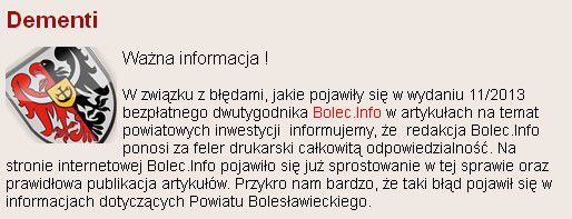 W wychodzącej ostatnio co miesiąc gazecie Bolec.Info opublikowano w reklamie starostwa trzy razy ten sam tekst. Kto dał ciała? Starostwo czy "profesjonalny zespół dziennikarzy"? Stawiamy na tych drugich, bo starostwo wydało komunikat.