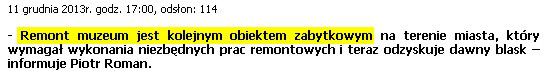 W/g Bolca "remont muzeum" to obiekt zabytkowy. Gratuluję polszczyzny.
