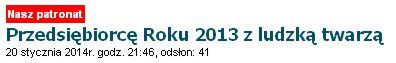 Dziś od razu dwie wpadki Marczewskich i Krzemińskich. Jedna sprzed kilku dni pt. PrzedsiębiorcĘ z ludzką twarzą... He he, piszem pąprawnię :) "Ludzka twarz" jest majstersztykiem. Gdyby nie napisali, to bym nie wiedziała, że facet ma twarz, ludzką w dodatku!