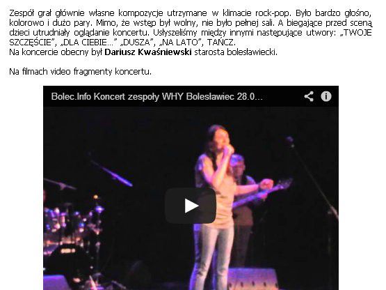 No na Bolcu teraz starosta to norma, wiem :). Ale informacyjnie to tak ni z gruszki ni z pietruszki. Opis koncertu, para, kolory, dzieci biegają, co irytują i nagle ten starosta na widowni. Tak trochę na siłę wcisniety, nie uważa Pan płemieł?
