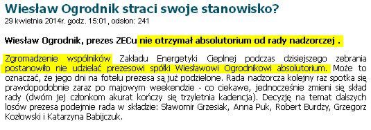 W Bolcu pracują totalni dyletanci. W informacji o prezesie Ogrodniku raz piszą, że nie dostał absolutorium od rady nadzorczej, a zaraz niżej że od zgromadzenia wspólników. Wypadałoby redaktorzy dyletanci z Bolca troche się podszkolić, bo rada nadzorcza i zgromadzenie wspólników to dwie totalnie różne rzeczy. Jak ten Marczewski kierował kopalnią jak takich podstawowych rzeczy nie poprawia na swoim portalu?