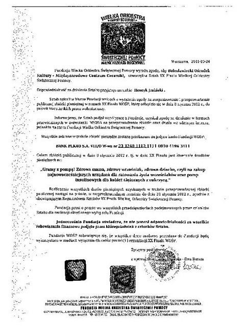 Jednocześnie zwracamy Państwa uwagę, że na w/w „Wniosku o zgodę na utworzenie Sztabu XX Finału WOŚP” widnieje oświadczenie podpisane przez pana Henryka Jasińskiego o następującej treści: