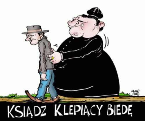 Kościół katolicki w Polsce, monopolista na rynku w swojej branży, broni się wszelkimi możliwymi sposobami przed wprowadzeniem jasnych i publicznie znanych regulacji finansowych. Mętność w tej dziedzinie powoduje, że Kościół czerpie kasę z kilku źródeł: z datków wiernych i obracania należącym do niego majątkiem oraz z budżetu państwa. Nie płaci przy tym żadnych podatków i krzyczy, że jest biedny. A już szczytem obłudy jest stwierdzenie, że czarni funkcjonariusze w Polsce są jednymi z niewielu w Europie utrzymującymi się wyłącznie z ofiar wiernych.