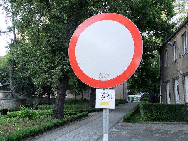 Szlak rowerowy przy BZ WBK. I oczywiście zakaz ruchu.