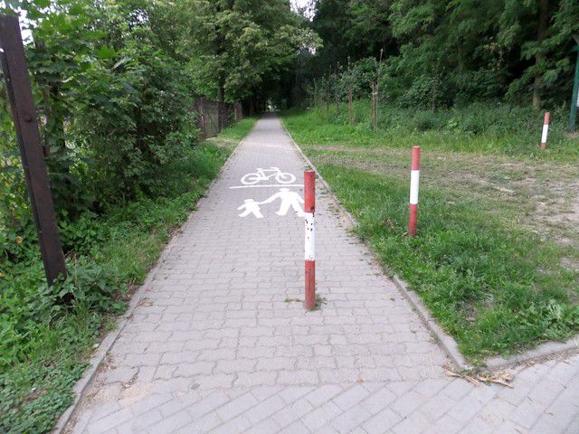 Ścieżka rowerowa przy lesie na końcu ulicy Piastów