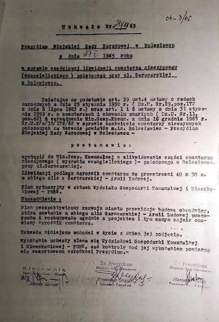 Druga uchwała MRN w sprawie likwidacji cmentarza ewangelickiego przy ul Garncarskiej.