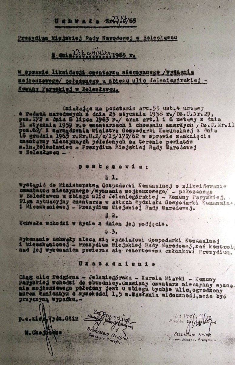 Uchwała MRN w sprawie likwidacji cmentarza żydowskiego.