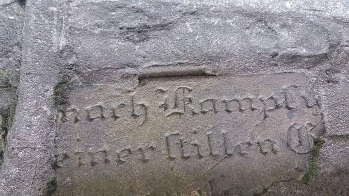 Fragment nagrobka z cmentarza ewangelickiego przy ul Grunwaldzkiej .Wykorzystany przy budowie murku przy ul Asnyka.