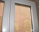 Przed chwilą zamontowane okno w korytarzu w budynku przy Wybickiego 4. Po co? Stare miało całe szyby.