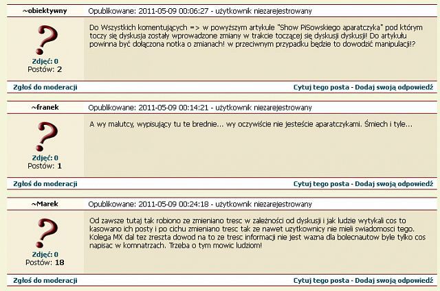 Na Bolcu w temacie Pospieszalskiego prawdopodobnie Emem wycina niewygodne posty a jego tatuś Kazimierz pisze, że nikt nie kasuje postów. Oni kpią w żywe oczy z wolności wypowiedzi. Na dowód wklejam zrzut z postami ~obiektywnego i ~Marka, których wycięto.