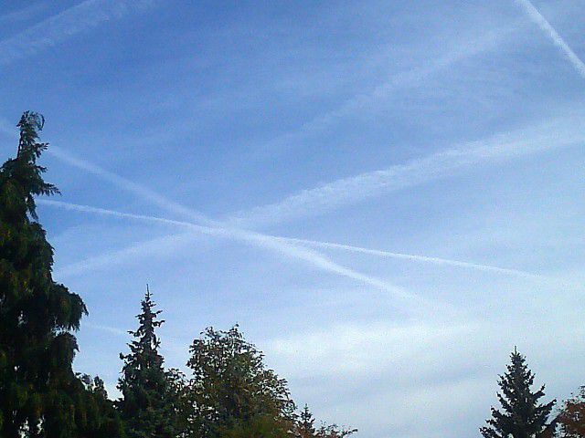 Skrzyżowanie lotów pasażerskich nad Bolesławcem, ruch jak nad Berlinem, wisi po tym oczywiście warstwa chemicznego syfu - wisi dopóki nie opadnie i bez wyjątków trafia do waszych organizmów. Tak kiedyś truli stonkę dzisiaj trują całe masy ludzi, a ludzie jeszcze za to płacą w celu "ochrony klimatu ziemi"! Cwaniacko proste i śmiertelnie szalony pomysł.