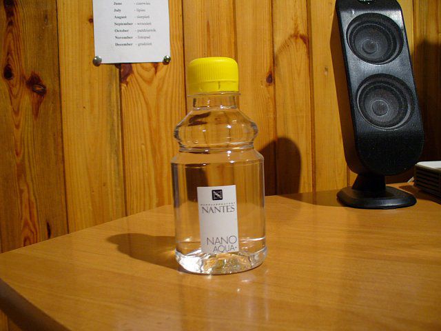 Przepis na nanowodęSkładniki:- Butelka nr 35- Nakrętka- Folia biała samoprzylepna do drukarek- Woda z kranuWykonanie:Butelkę plastikową o fikuśnym kształcie napełniamy wodą z kranu i zakręcamy. Folię samoprzylepną zadrukowujemy tekstem złożonym z wyrazów w obcym języku i/lub pochodzących z książki do chemii z podstawówki (im mniej zrozumiałe tym lepiej), efektowne lecz wymagające niewielkiej ilości tuszu logo tez się przyda (pamiętajmy, że tusz do drukarki jest tu najdroższym składnikiem, więc etykiety powinny być jak najmniejsze). Wycinamy etykiety (arkusz A4 foli samoprzylepnej wystarczy na kilkadziesiąt butelek) i naklejamy. Gotową nanowodę sprzedajemy jako kosmetyk za ciężkie pieniądze, dodatkowo możemy jeszcze liczyć na nagrodę za promocję miasta.