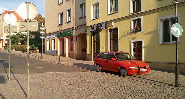 Drogi Anonimie. Jeśli tak, to ten znak powinien stać tam gdzie stoi czerwony samochód a nie na przeciw Baru Mlecznego. Pozdrowienia.