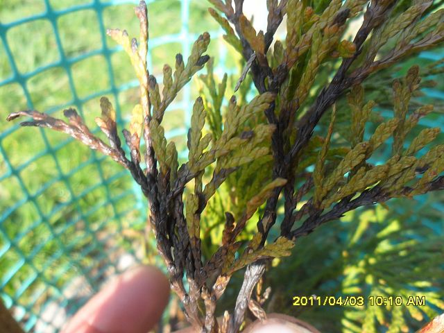 Pryskaj czem prędzej na choroby grzybiczne, ja to w zeszłym roku zrobiłem to zbyt późno i z powodu grzyba i psów sąsiada pozbyłem sie ok 20 tui...2011-04-04, 08:41Ponad 40 tui poprzez opryski uratowałem, przedrukuję tu fragment artykułu: "gdy na igłach pojawiają się brązowe plamy lub kreski, a następnie tkanki brązowieją i czernieją, przystępuje się do ochrony roślin. Niezbędne jest wówczas kilka opryskiwań począwszy od czerwca aż do jesieni, takimi fungicydami jak różne formy Dithane lub Penncozeb, w stężeniu od , 2 do , 35%, Sarfun 500 SC lub Topsin M 70 WP , 1%. W przypadku sosny bardzo skuteczne jest wygrabienie i palenie opadłych igieł". Ja pryskałem tym topsinem i pomogło, opryski trzeba zrobić tak z 3 razy w odstępach 14 dni. Pozdrawiam.2011-04-04, 08:47Można zakupić też środki antygrzybiczne do podlewania, najlepiej stosować to i to i nie czekałbym do czerwca tylko zrobiłbym to już (byle po oprysku z 2 dni nie padało), przed pryskaniem weź sekator i powycinaj uschnięte i czarne gałązki, najlepiej je spal!