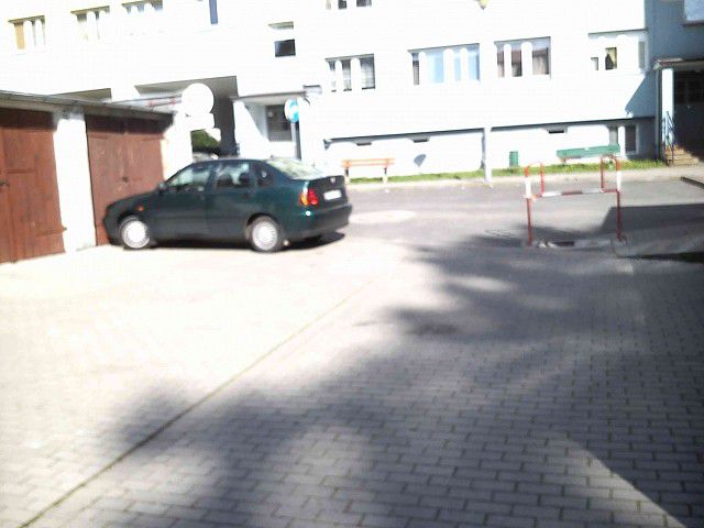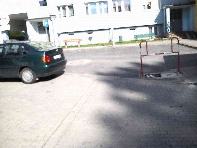 Starszy człowiek bezmyślnie parkuje zielonym seatem od ponad roku. Utrudnia to wjazd z jednokierunkowej do garaży. Teraz /w tej sytuacji uszkodzonej klapy studzienki i jej braku/ przeszedł samego siebie. Sądzi że jak parkuje tam od ponad roku to barierka nie stanowi przeszkody. Napewno nie dla niego ale dla wyjeżdżających z garaży tak. Większym autem /bus/ dopóki nie położą nowej klapy na studzienkę nie przejedzie.