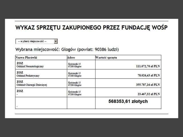 ~Antyrineo napisał(a): Antyrineo. Dane mówią same za siebie, Fundacja zadbała o nasz szpital, jak ch... . Na stronie WOŚp-u wiele ciekawostek co do miejsc, gdzie trafiał sprzęt, polecam Gdańsk, miasto rodzinne Pana J. O.