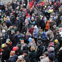 Przed kościołami rozdawano paradującym: korony, śpiewniki, balony, orszakowe flagi, naklejki oraz inne gadżety i pamiątki.