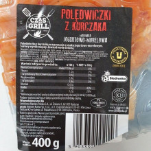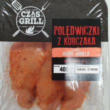 Nazwa produktu: Polędwiczki z kurczaka o smaku jogurt-morela. Surowy wyrób mięsny. 400g