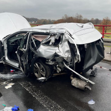 (...) kierowca jednego z pojazdów wjechał z nadmierną prędkością w koniec korka zatrzymanego ruchu na moście na Nysie Łużyckiej. Siła uderzenia była tak duża, że zepchnęła samochód stojący przed nim na kolejny pojazd.