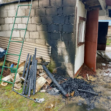 Po przybyciu na miejsce potwierdzono pożar drewna przy altance, ogień zdążył przenieść się na dach budynku. Podano natychmiast jeden prąd wody, tłumiąc pożar, dokonano również rozbiórki nadpalonych elementów altany, aby wyeliminować pozostałe zarzewia ognia.