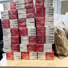 W 4 torbach podróżnych znajdujących się w bagażniku zabezpieczono 11 worków strunowych zawierających łącznie 5,5 kg krajanki oraz 310 paczek zawierających po 20 papierosów.