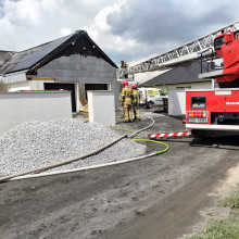 Po przybyciu na miejsce zdarzenia stwierdzono, że pożarem objęty jest dach budynku mieszkalnego. Działania jednostek ochrony przeciwpożarowej polegały na zabezpieczeniu miejsca zdarzenia, podaniu prądów gaśniczych w natarciu na palącą się konstrukcję dachu oraz częściowej rozbiórce pokrycia w celu dogaszenia zarzewi ognia.