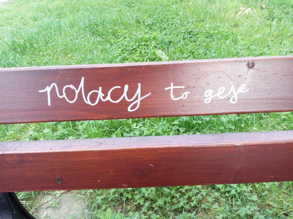 Na osiedlowych ławkach przy ulicy Konstytucji 3 Maja (Osiedle Staszica) pojawiły się obraźliwe, antypolskie hasła. Na jednym słowo polska jest zawieszone na szubienicy. W innym miejscu przeczytamy, że polacy to geje (cytaty jak w oryginale).