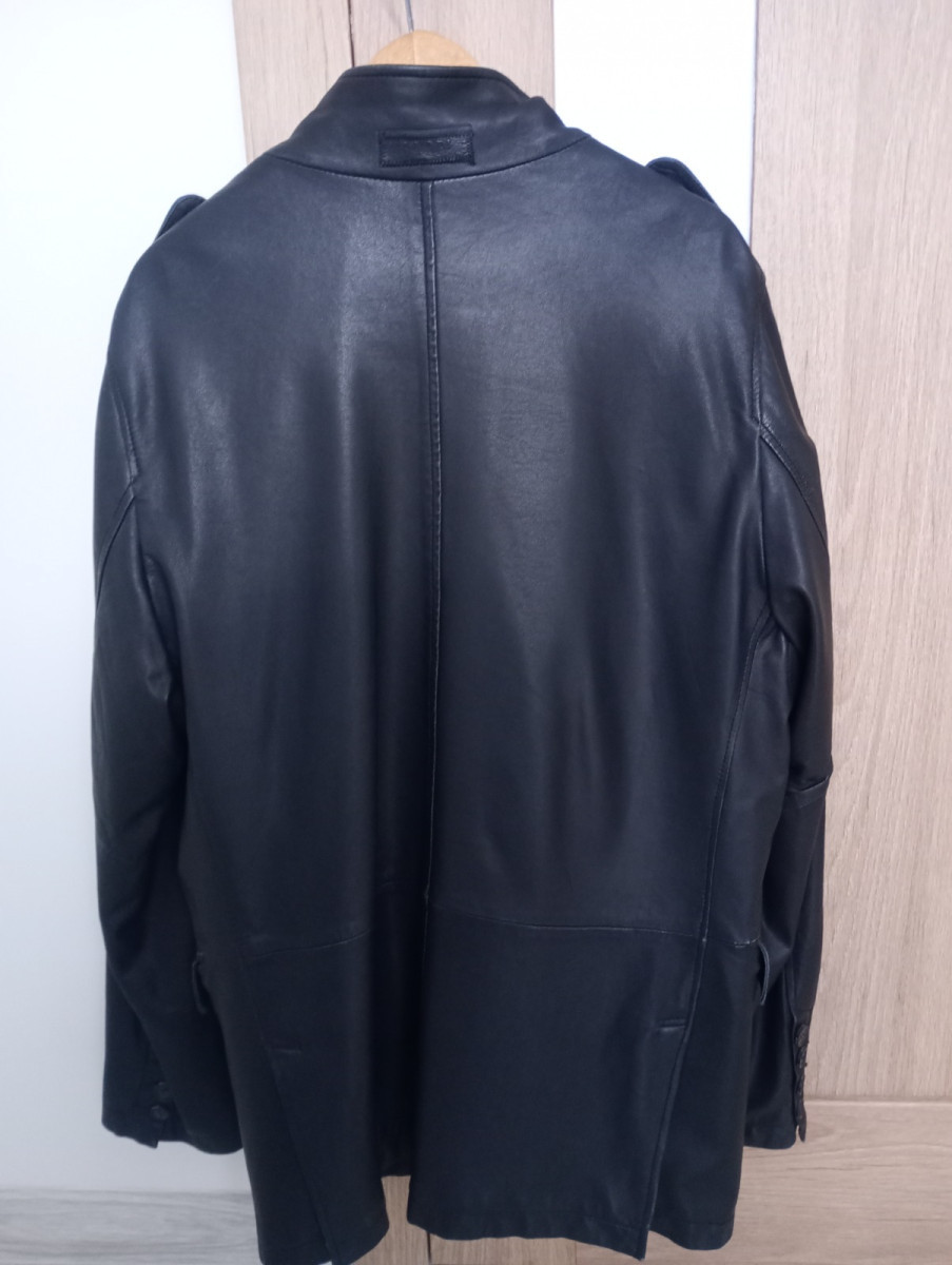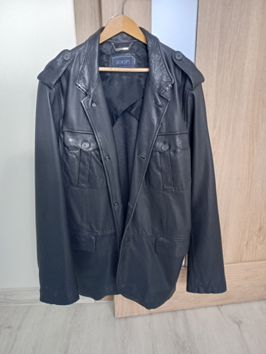 Witam, do sprzedania kurtka/płaszcz męski ze skóry renomowanej marki JOOP, rozmiar 52, model Parkfield, kolor czarny. Stan oceniam na bardzo dobry, płaszcz posiada niewielką dziurkę z tyłu po prawej stronie widoczną na zdjęciu. Poza tym skóra cała i nie powycierana. ORYGINAŁ.