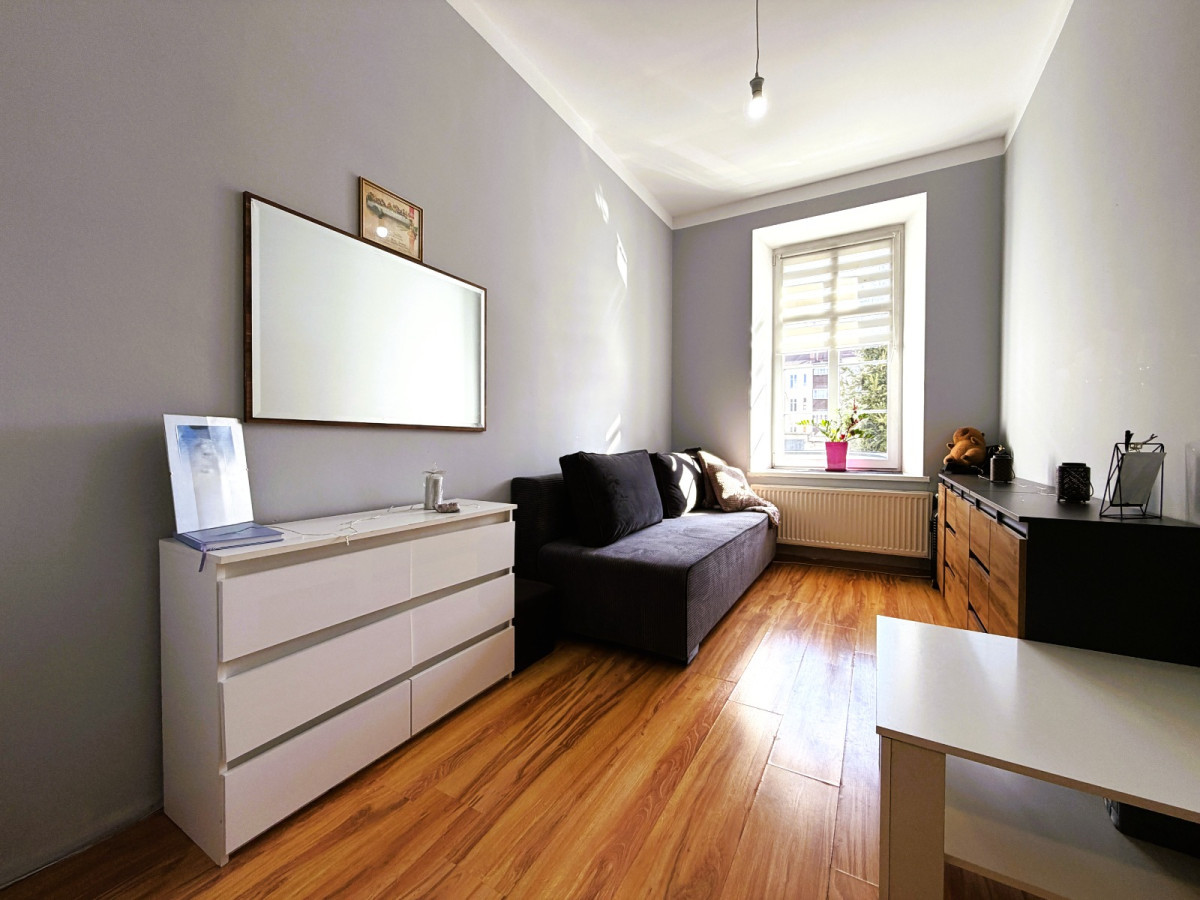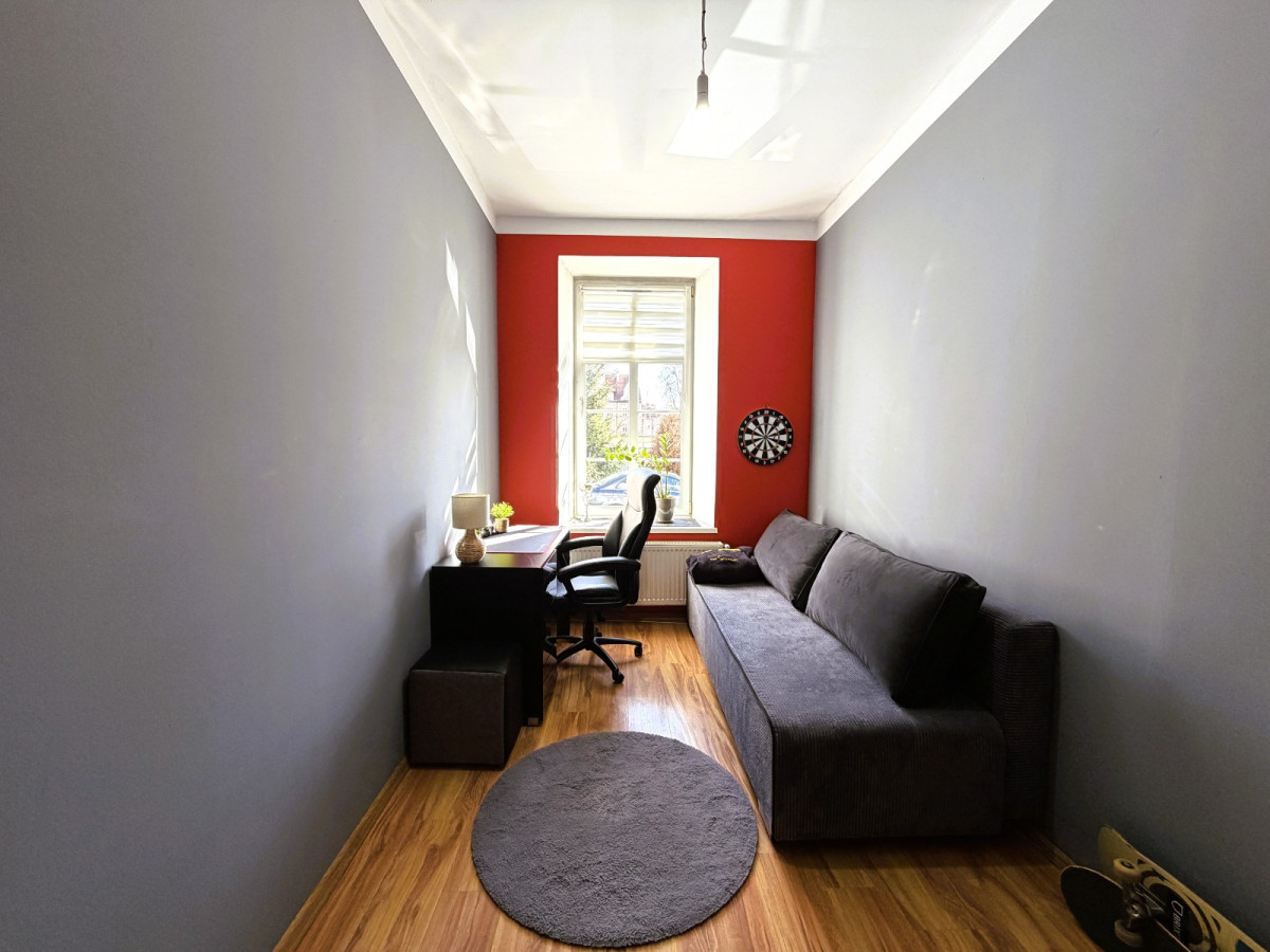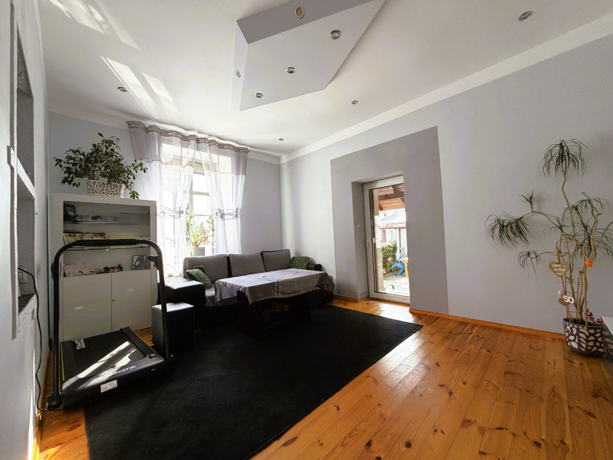 Mieszkanie znajduje się na parterze atrakcyjnej kamienicy i posiada bezpośrednie wyjście z salonu do ogródka.