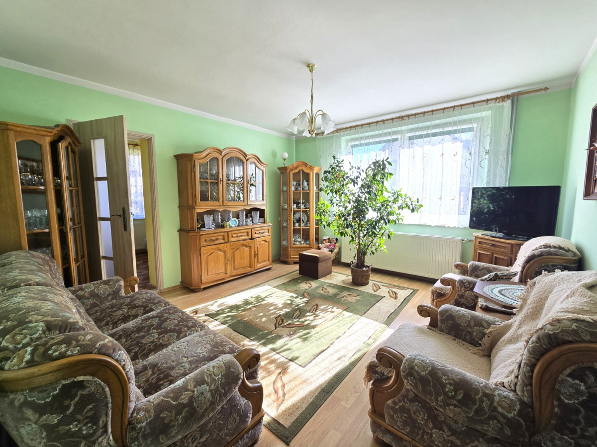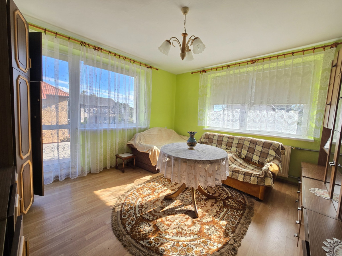 Dom jest przestronny, funkcjonalny i posiada dwa pełne poziomy mieszkalne. Na parterze znajdują się trzy ustawne, słoneczne pokoje, kuchnia z oknem, łazienka z wanną oraz korytarz. Na piętrze mieści się strefa prywatna: dwa pokoje (w tym jeden z wyjściem na balkon), łazienka z wanną i oknem oraz druga kuchnia, która może pełnić funkcję dodatkowego pokoju lub garderoby. Korytarz z wyjściem na balkon dodaje wnętrzu lekkości i możliwości relaksu na świeżym powietrzu.