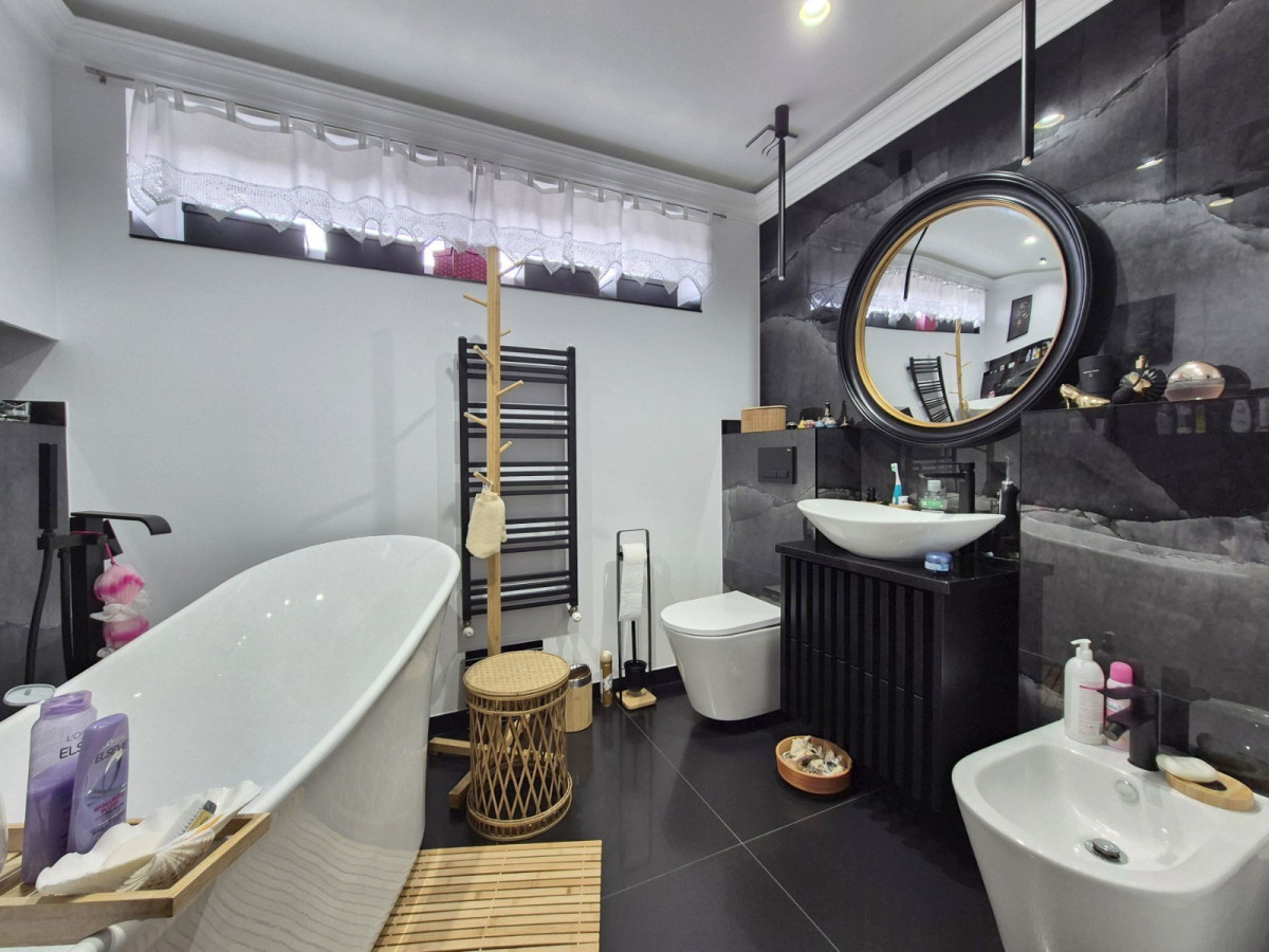 – ogrzewanie podłogowe w łazience, w pozostałych pomieszczeniach grzejniki.