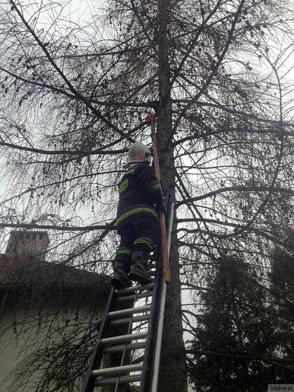 Nietypowa akcja: zdjęli kota z drzewa