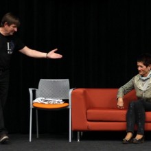 Na zajęciach rzeczywiście jest energia. Zespół próbuje scenki do spektaklu „Kawał sztuki o miłości”, powtórzy go 26 maja, na Dzień Matki. Na scenę wychodzi Daniel z partnerką. Kobieta kładzie się na kanapie, jest żoną czekającą na swojego niewiernego męża. Teksty Brzechwy są ironiczne, błyskotliwe, pełne nagłych zwrotów akcji i zabawnych bon motów (dowcipne powiedzenie). Jest w nich też wiele emocji, flirtu, mądrości życiowych i anegdotek. Doskonały repertuar dla początkujących. Z jednej strony ambitny, z drugiej pełen luzu i dobrego humoru.