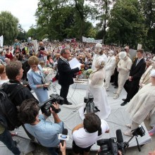 Piotr Roman odpowiedział na prowokację: - Zawsze jestem z mieszkańcami i myślę, że to jest ten moment… Mieliśmy przed chwilą ślub i życzę państwu młodym wszystkiego najlepszego.