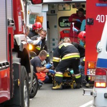 Kierowcy jednośladu urwało nogę. Pierwszej pomocy udzielili mu jadący tamtędy Niemcy. Potem strażacy ochotnicy, m.in. Robert Dziubak z OSP z Ruszowa, który zaopatrzył potężną ranę. Poszkodowany został przetransportowany helikopterem do szpitala.