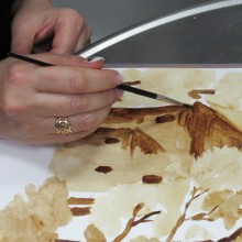 Lekko stremowana malarka pokazała, jak zrobić barwnik z kawy rozpuszczalnej i pomalowała wcześniej przygotowany ołówkiem szkic. Technikę malowania kawą obserwowali z zapałem goście, podziwiając kunszt malarski Jolanty Duszy.