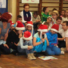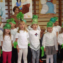 Podczas spotkania, na sali sportowej pięknie udekorowanej plakatami, rysunkami i wesołymi hasłami, dzieci zadawały zagadki przybyłym gościom. Trzy drużyny dorosłych musiały zgadnąć o jakich bajkowych postaciach dzieci przygotowały: rymowanki, piosenki i mini dramy. Goście tańczyli razem z dziećmi, „jechali autostopem” do innych krain, bawili się w takt piosenek oraz wysłuchali wiersza Jana Brzechwy czytanego przez Paulinkę, uczennicę klasy trzeciej.
