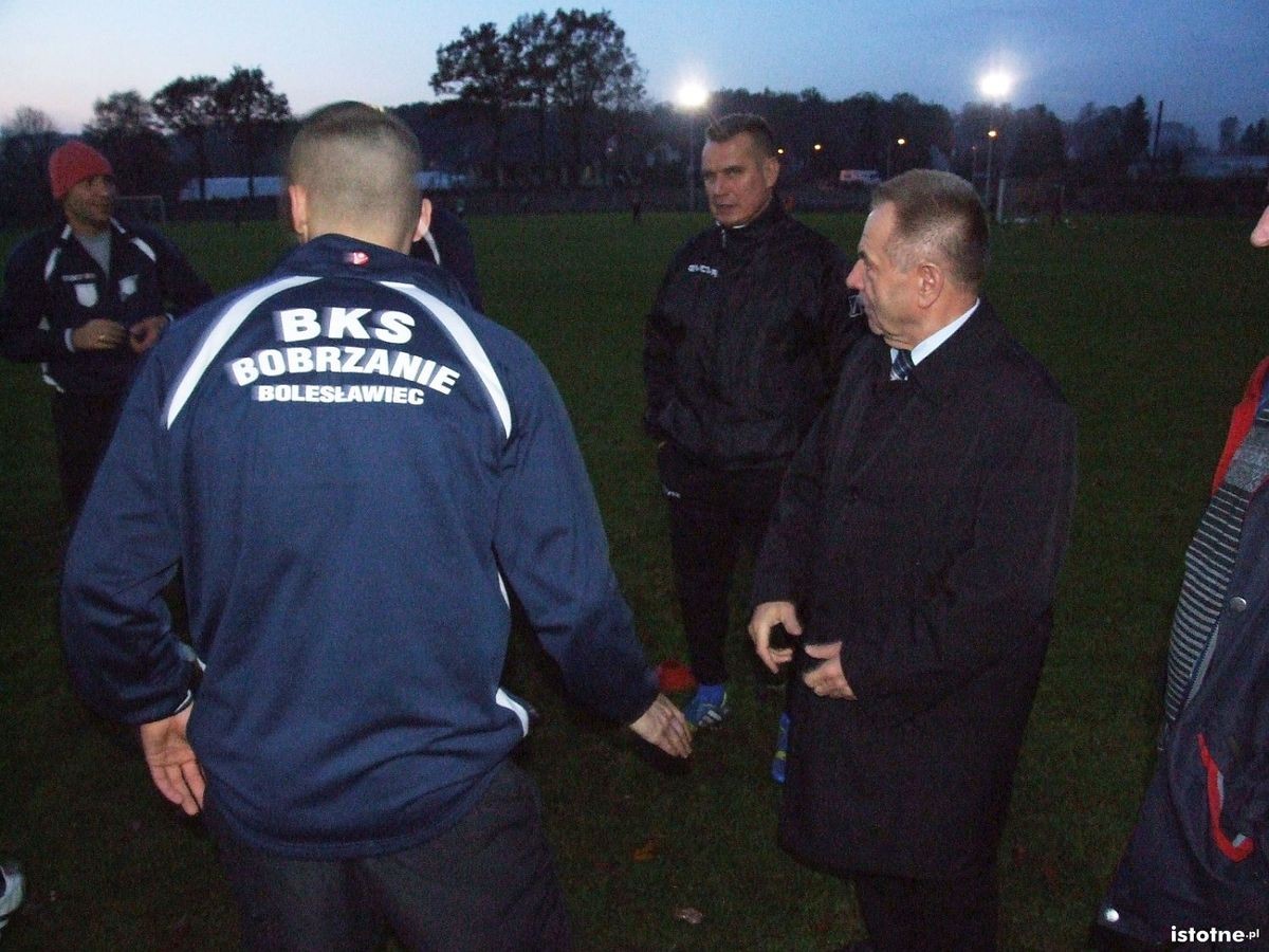 W środę, 12 listopada, trenujących na boisku przy ul. Spacerowej seniorów BKS Bobrzanie odwiedził wicestarosta Stanisław Chwojnicki. Wicestarosta rozmawiał z piłkarzami i trenerem Andrzejem Kisielem oraz poinformował, że ufundował z prywatnych pieniędzy komplet koszulek polo dla piłkarzy. Wartość podarunku to 1700 zł. To już kolejna inicjatywa Stanisława Chwojnickiego wobec piłkarzy BKS. Kilka sezonów wcześniej wicestarosta nagradzał najlepszych zawodników piłkarskimi butami.