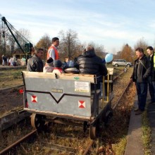 Po odsłonięciu nowego starego żurawia kolejowego chętni mogli przejechać się drezyną kolejową, która tego dnia pojawiła się przy kowarskim dworcu dzięki staraniom Fundacji Kolej Karkonoska.