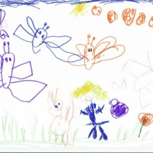 – Cudowne sześć paluszków garbuski i ten skory do zabawy Biszkopt, leżący na plecach na pracy Milenki zachwycają. Poza pieska jest świetna, sama bym nie umiała przedstawić go lepiej – stwierdziła Anna. – Pszczółki, motylki, sówka, jeż na rysunkach też mnie oczarowały, jak widać zarówno dzieci jak i Matylda mają dobry kontakt ze zwierzątkami. Choć wiele kresek jest przypadkowych, w całości wszystkie prace odnajdują się znakomicie. Wyobrażam sobie te uśmiechy dzieci w trakcie twórczej pracy. Brawo – chwali malarka.