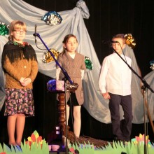 Chór zapowiadał historie, dzieci tańczyły, śpiewały, grały i bawiły się w teatr tak intensywnie, że goście, młodsi i starsi, z otwartymi buziami lub głośnym śmiechem, śledzili z uwagą losy bohaterów. Kolorytu dodawały wesołe stroje aktorów, scenografia, muzyka i światła. Spektakl zakończył się wielkimi brawami publiczności.