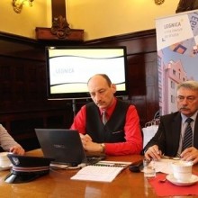 Reprezentujący partnerów porozumienia: Jadwiga Zienkiewicz, zastępczyni prezydenta Legnicy, Piotr Rachwalski, prezes zarządu Kolei Dolnośląskich, i Zdzisław Bakinowski, prezes zarządu MPK w Legnicy, zaprezentowali nowy projekt na konferencji prasowej 12 maja br.